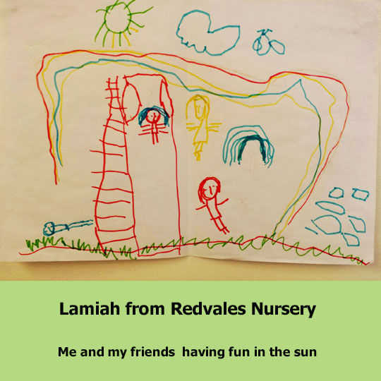 Congratulations to Amelia aged 3 from Hargate Avenue, ‘Me and my friends’ sums up what Amelia likes about her nursery life.